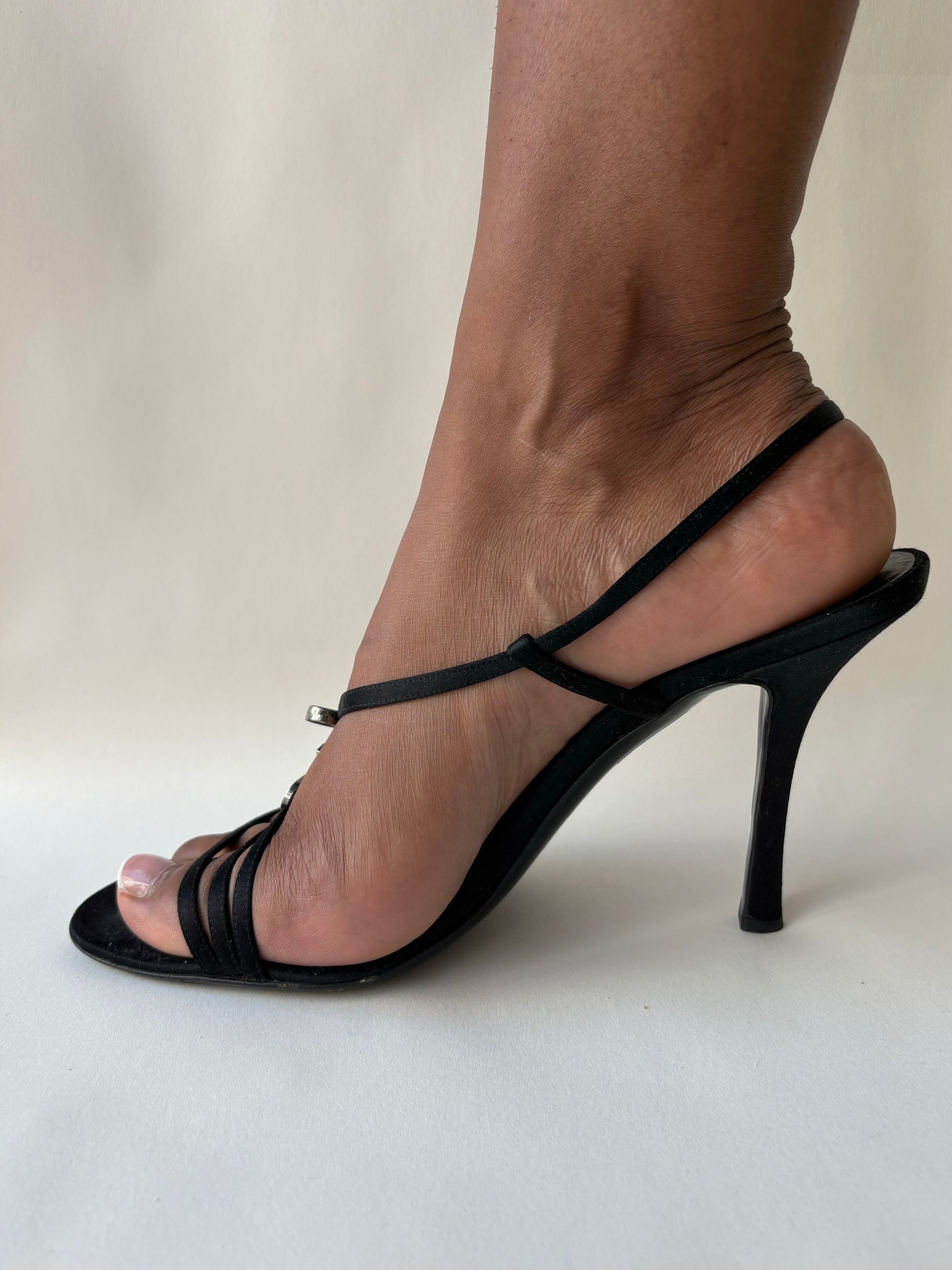 Dior By John Galliano black heels with silver hardware ‘CD’ bow size 39 (us 8)